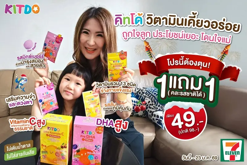 PR “คิทโด้” วิตามินเม็ดเคี้ยว 2 รสชาติ ทางเลือกเสริมโภชนาการสำหรับเด็กวัยเรียน พร้อมโปรพิเศษ ซื้อ 1 แถม 1 ที่เซเว่น อีเลฟเว่น และกิจกรรมวันเด็ก Happy Children’s Day กับ KITDO มกราคม 9, 2026มกราคม 9, 2026