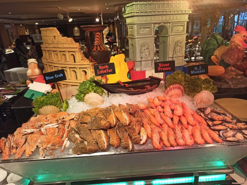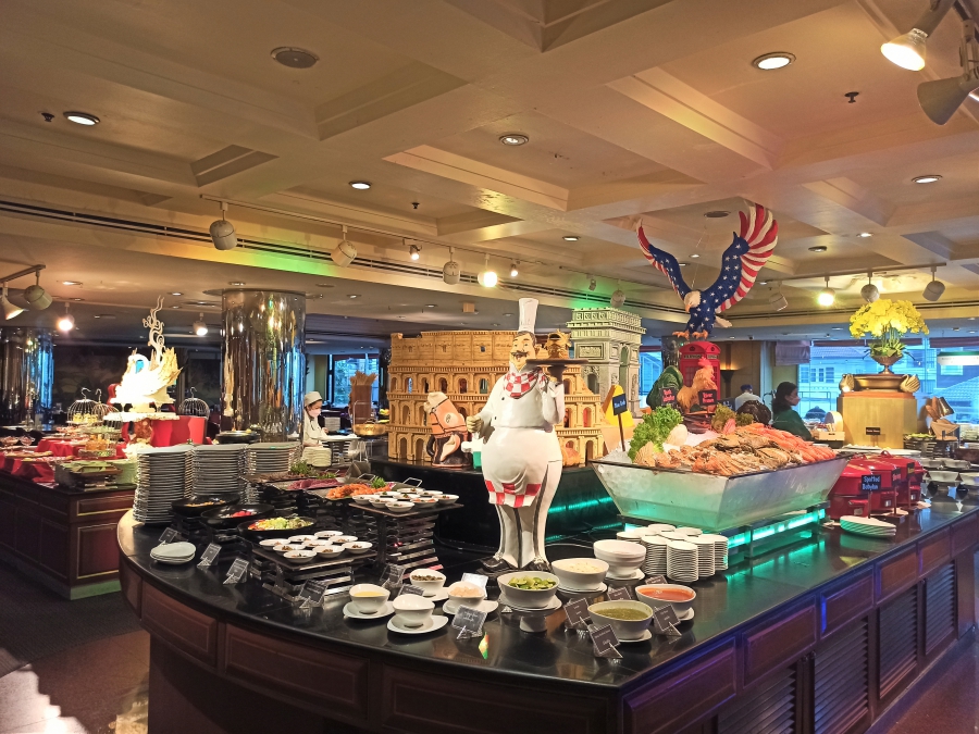 ไลน์บุฟเฟต์เปิดเวลา 18.00 น. ค่ะ : มีบริการอาหารนานาชาติหลากหลายทั้งเอเชีย ยุโรป รวมถึงอาหารไทย มีให้เลือกอร่อย เรียกว่ารองรับได้ทุกเพศทุกวัยค่ะ ในแต่ละวันก็จะมีเมนูพิเศษที่แตกต่างหมุนเวียนไป แวะมากินได้บ่อยไม่ต้องกลัวเบื่อนะคะ บรรยากาศห้องอาหารกว้าง เดินสบาย ไม่แออัด หากต้องการความเป็นส่วนตัวสามารถจองห้องวีไอพีที่ได้ค่ะ ตามมาเลบจ้า…