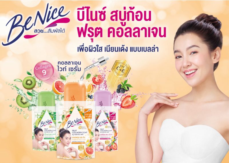 ผิวสวยกระจ่างใสไม่ต้องรอนาน เป็นเจ้าของผลิตภัณฑ์ใหม่ ! สบู่ก้อน บีไนซ์ ฟรุต คอลลาเจน ได้แล้ววันนี้ที่ซูเปอร์มาร์เก็ต และร้านค้าทั่วประเทศใกล้บ้าน และติดตามกิจกรรมผิวสวยสัมผัสได้ทาง Facebook: www.facebook.com/BeNiceThailand และ Instagram: www.instagram.com/benice_thailand/