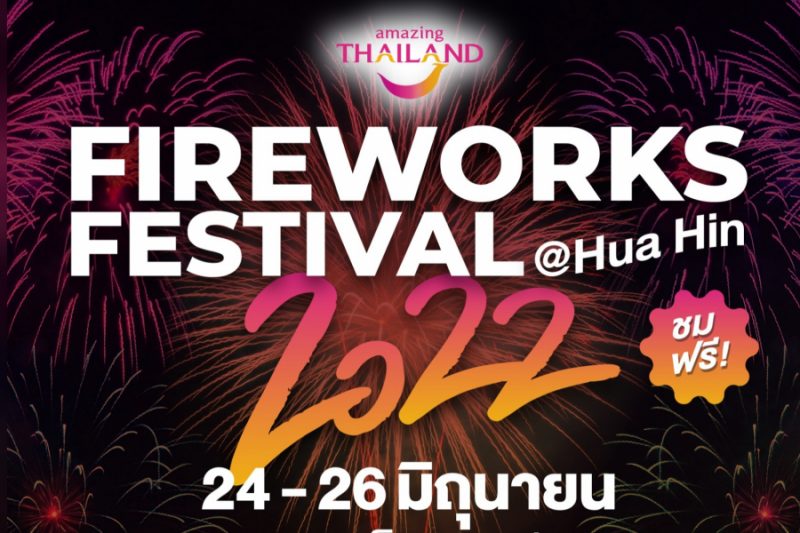 กระทรวงการท่องเที่ยวและกีฬา โดย การท่องเที่ยวแห่งประเทศไทย (ททท.) ร่วมกับจังหวัดประจวบคีรีขันธ์ เทศบาลเมืองหัวหิน องค์การบริหารส่วนจังหวัดประจวบคีรีขันธ์ สมาคมธุรกิจการท่องเที่ยวหัวหิน-ชะอำ ผนึกกำลังจัดงาน “Amazing Thailand Fireworks Festival 2022 @ Hua Hin” ระหว่างวันที่ 24-26 มิถุนายน 2565 เพื่อผลักดันให้เป็นจุดหมายปลายทางหลักให้แก่นักท่องเที่ยว ส่งเสริมกระตุ้นเศษฐกิจและกระจายรายได้สู่ท้องถิ่น-ชุมชน เพื่อเสริมสร้างการท่องเที่ยวที่มั่นคงและยั่งยืน โดยภายในงานแถลงข่าว ณ แบมบินี่ วิลล่า พระราม4 ได้รับเกียรติจากนางสาวฐาปนีย์ เกียรติไพบูลย์ รองผู้ว่าการด้านตลาดในประเทศ ททท. เป็นประธานพิธีเปิดงาน โดยมีนายวิษณุ อรุณบำรุงวงศ์ รองผู้อำนวยการภูมิภาคภาคกลาง และศิลปินแร๊พชื่อดัง ซีดี-กันต์ธีร์ ปิติธัญ มาร่วมสร้างสรรค์