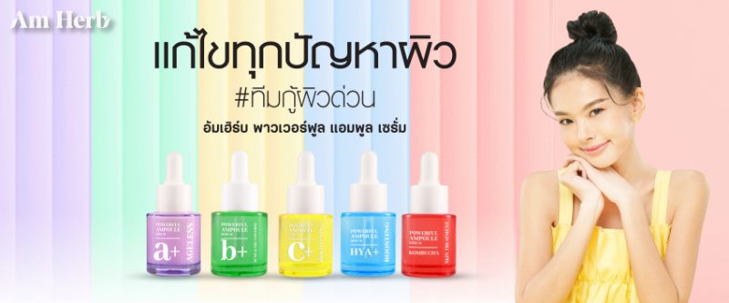ปฏิบัติการฟื้นคืนผิวสวยใส กับอัมเฮิร์บ พาวเวอร์ฟูล แอมพลู เซรั่ม ซีรี่ส์ (Amherb Powerful Ampoule Serum Series) กับ 5 สูตรใหม่ พร้อมเสริมสารสร้างความแข็งแกร่งให้กับชั้นผิวได้อย่างเหนือชั้น ด้วยสูตรใหม่ไฉไลกว่าเดิม จัดเต็มทั้ง 5 สี 5 สูตร จัดการปัญหาผิวได้อย่างตรงจุดเพาะตัว ดังนี้