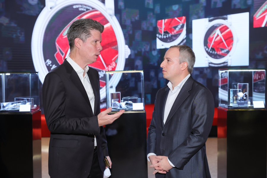 ต่อมาที่ RICHARD MILLE PROTOTYPE RM050 ‘JEAN TODT 50TH ANNIVERSARY’ โดดเด่นด้วยกรอบหน้าปัดสีน้ำเงิน บริเวณหน้าปัดมีความโปร่งใสสามารถมองเห็นกลไกการทำงานได้อย่างชัดเจน นับเป็นอีกเรือนที่ควรค่าแก่การเก็บสะสม เพราะเป็นเรือนต้นแบบ (Prototype) เรือนที่ 3 จาก 5 เรือน ที่ผลิตขึ้นเพื่อเป็นการเฉลิมเฉลองครบรอบ 50 ปี ของการเข้าสู่วงการมอเตอร์สปอร์ตระดับมืออาชีพของ ฌอง ทอดต์ ในปี 2017 อีกทั้งตัวเรือนยังมีน้ำหนักเบา พร้อมติดตั้งฟังก์ชั่นจับเวลาได้นานถึง 30 นาที