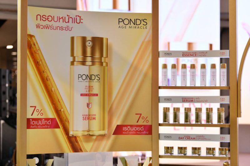 คุณสถิรวรรณ เอี่ยมอ่อง ตำแหน่ง ผู้ช่วยผู้อำนวยการฝ่ายพัฒนาตลาด กลุ่มผลิตภัณฑ์บำรุงผิวกายและผิวหน้าประเทศไทย บริษัท ยูนิลีเวอร์ไทย เทรดดิ้ง จำกัด เผยว่า นับเป็นการกลับมาอย่างยิ่งใหญ่ของพอนด์สที่ปีนี้มีความมุ่งมั่นจะก้าวสู่ตำแหน่งผู้นำตลาดสกินแคร์ต่อต้านริ้วรอยในไทย โดยในครั้งนี้สถาบันวิจัยพอนด์สญี่ปุ่นได้นำแรงบันดาลใจจากเทคนิคร้อยไหม และเทคโนโลยีล้ำหน้าแห่งการลดเลือนริ้วรอย ถือว่าเป็นครั้งแรกของการเปิดตัวกลุ่มผลิตภัณฑ์พรีเมียมของพอนด์สผ่าน การนำ 2 ส่วนผสมหลักอันทรงพลังที่ช่วยลดเลือนร่องรอยแห่งวัยในปริมาณเข้มข้น แต่ยังอ่อนโยนต่อผิว ได้แก่