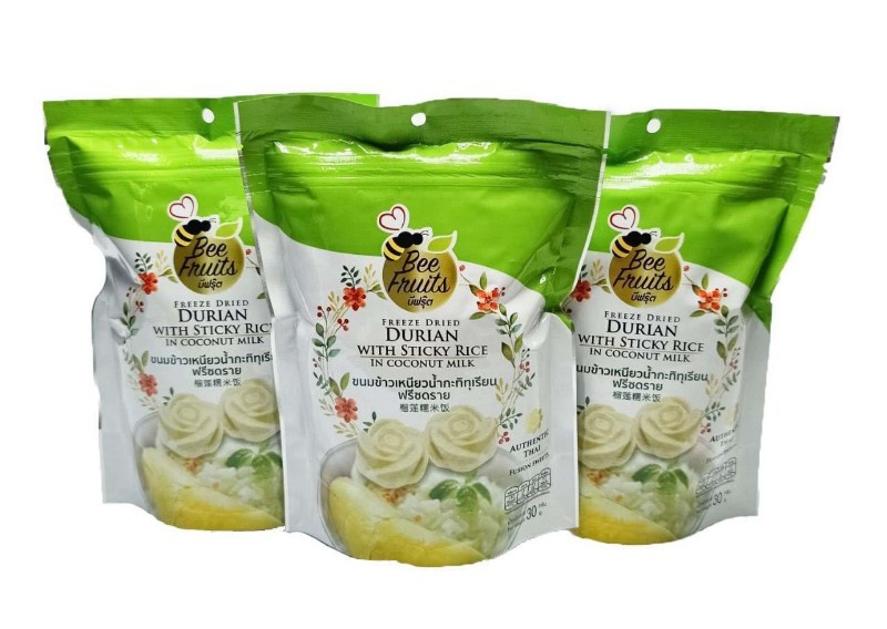 เรียกว่างานนี้สายหวานต้องร้องว๊าว!กันยกใหญ่เลยทีเดียว เพราะล่าสุดแบรนด์ บีฟรุ๊ต (Beefruits) โดย “คุณบุญเที่ยง พฤกษากิจ”ได้เปิดตัวข้าวเหนียวทุเรียนฟรีซดราย (Freeze dried durian with sticky rice)และข้าวเหนียวมะม่วงฟรีซดราย (Freeze dried mango with sticky rice) ในรูปแบบห่อ ที่พร้อมเสิร์ฟสายหวานได้ทุกที่ทุกเวลาและทุกๆฤดูกาล