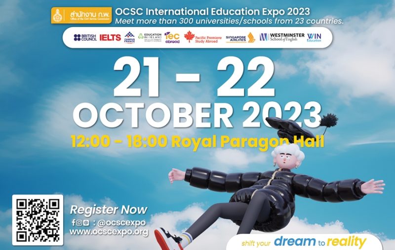 สำนักงาน ก.พ. จัดงาน “OCSC International Education Expo 2023” มหกรรมศึกษาต่อต่างประเทศ ครั้งที่ 18 ขึ้น ภายใต้แนวคิด Shift your dream to reality ปั้นฝัน…ให้เป็นจริง เชิญชวนนักเรียน-นิสิต/นักศึกษา-ข้าราชการ ตลอดจนทุกคนที่มีความฝัน มาสร้างและทำให้เป็นจริงได้ที่งานครั้งนี้ ผ่านบูธกิจกรรมมากมายที่นำเสนอ อาทิ ข้อมูลทุนรัฐบาล, ข้อมูลจากสถาบันและมหาวิทยาลัยชั้นนำทั่วโลกกว่า 250 สถาบัน จาก 23 ประเทศ, เทคนิคการทำข้อสอบ IELTS, เคล็ดลับการพิชิตทุนเรียนฟรี
