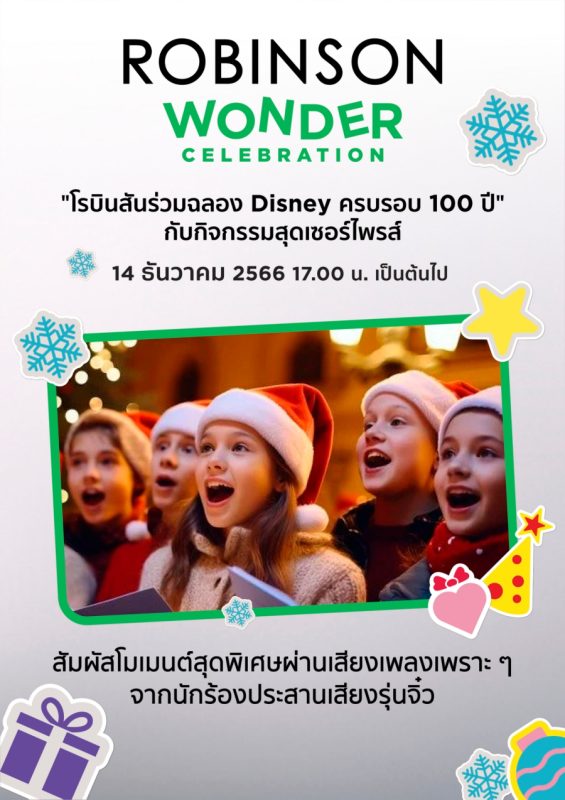 พร้อมร่วมชมโชว์สุดพิเศษตระการตา ทั้งขบวนพาเหรด และเพลิดเพลินไปกับบทเพลงจากนักแสดงตัวน้อย รวมทั้งฟินต่อเนื่องไปกับมินิคอนเสิร์ตจากหนุ่มฮอต ‘เจมี่ไนน์’ ในวันพฤหัสบดีที่ 14 ธ.ค. 66 ตั้งแต่เวลา 18.00 น. เป็นต้นไป ที่ชั้น 1 ห้างโรบินสัน พระราม 9