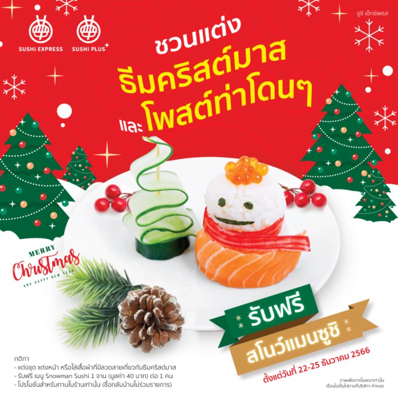 วันที่ 22 – 25 ธันวาคมนี้ แต่งตัวตามธีมเทศกาลคริสต์มาส รับฟรี เมนู Snowman Sushi 1 จาน