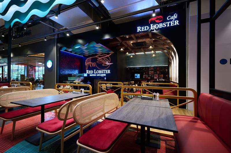 “Red Lobster” สาขาใหม่นี้ โดดเด่นด้วยเมนูล็อบสเตอร์และอาหารทะเลหลากหลาย ที่ยังคง ชูจุดยืนเรื่องคุณภาพและความสด โดยเฉพาะล็อบสเตอร์ตัวเป็น ๆ หรือ Live Lobster จากน่านน้ำมหาสมุทรแอตแลนติก ส่งตรงความสดมาไว้ที่ล็อบสเตอร์แทงค์บริเวณด้านหน้าร้าน ในบรรยากาศร้านสไตล์ชิค ๆ ของย่านสุขุมวิทที่ตอบโจทย์ Lobster & Seafood Destination สไตล์การตกแต่งของ “Red Lobster” สาขานี้ จึงมิกซ์แอนด์แมทช์อย่างลงตัวในรูปแบบ “Lobster Café” เน้นโทนสีดำ แดง ที่ให้ความรู้สึกเหมือนนั่งคาเฟ่เท่ ๆ แต่ก็ยังคงได้ฟีลทะเลด้วยการแทรกสีฟ้าเทอร์ควอยซ์ในดีเทลต่าง ๆ โดยเฉพาะลวดลายของเกลียวคลื่น และเพิ่มความพิเศษด้วยพื้นที่ Balcony อีกฝั่ง ที่ลูกค้าสามารถนั่งชมวิวมุมสูงได้ฟีลลิ่งชิล ๆ ไปอีกแบบ