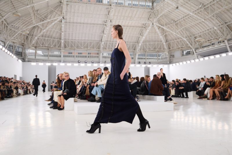 เมื่อแปลงเป็นผ้าสักหลาด ผ้าเดรป และผ้าทวีตด้วยงานเย็บแบบเปิด สิ่งเหล่านี้คือความแตกต่างที่เย้ายวนใจสำหรับชุดของ Max Mara กระโปรงทรงบรอดโคลทและทูนิคเดรสที่นำความเป็นผู้หญิงรูปแบบใหม่มาสู่กระโปรงบรอดโคลทที่มีสไตล์อย่างพิถีพิถัน ชุดนอนอันพลิ้วไหวและเสื้อคลุมทับชุดนอนตัวยาว ผ้าสักหลาดหรือผ้ากำมะหยี่ สร้างความโดดเด่นทั้งในยามกลางวันและกลางคืน เมื่อออกจากความมืดมิด แสงระยิบระยับของคริสตัลสีดำและสีน้ำเงินเน้นย้ำถึงรูปทรงที่ชัดเจน