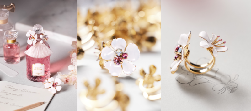 ในช่วงต้นปีขณะที่ฤดูใบไม้ผลิใกล้มาถึง หนึ่งในผลงานร่วมสร้างสรรค์กับศิลปินต่างแขนงจาก Maison Guerlain ที่เหล่าสาวกน้ำหอมและนักสะสมงานศิลป์ทั่วโลกต่างเฝ้ารอด้วยปรารถนาจะจับจองเป็นเจ้าของนั่นก็คือ Cherry Blossom Millésime น้ำหอมตระกูลดอกไม้รุ่นพิเศษเฉพาะปี ซึ่งในปีนี้ได้นำขวดลายผึ้ง Bee Bottle อันโด่งดังระดับตำนานมาตกแต่งอย่างวิจิตรบรรจง เพื่อยกย่องความสำคัญของเทศกาลชมดอกซากุระหรือ เทศกาล “ฮานามิ” ของชาวญี่ปุ่น โดย ฟิลิปป์ แฟรรองดิส์ (Philippe Ferrandis) ช่างศิลป์อัญมณีสัญชาติฝรั่งเศส ผู้เปี่ยมความเป็นเลิศในด้านงานเครื่องประดับชั้นสูงร่วมสมัยสไตล์ปารีเซียง ความพิเศษของน้ำหอมขวดนี้ คือ การที่เขาได้ออกแบบแหวนรองรับดอกซากุระที่สามารถปลดออกมาเพื่อใช้เป็นแหวนสวมระหว่างนิ้วได้จริงในชีวิตประจำวัน ตลอดจนความงดงามอ่อนหวานของงานลงยาสีชมพูอ่อนร่วมกับเทคนิคเคลือบทอง 24 กะรัต และ งานฝังคริสตัลระยับประกายเพื่อเป็นตัวแทนแห่งความรักและความสุข