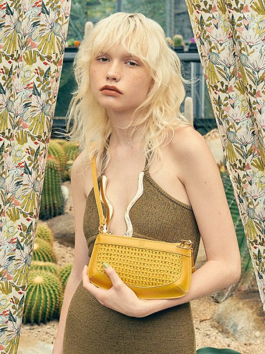ต่อมากับ Casa del Cactus ที่ชวนให้คุณค้นพบความงดงามในแบบ Exotic ที่ซ่อนอยู่ในสวนพฤกษศาสตร์เขตร้อนที่มีต้นกระบองเพชรและพืชพรรณสีเขียวฉ่ำ โดยนำเสนอผลงานดีไซน์ที่ให้กลิ่นอายการแต่งตัวโบฮีเมียนชิค มีจุดเด่นเป็นการใส่เทคนิคแบบสานเพื่อเพิ่มมิติความโปร่งเบาและเท็กซ์เจอร์ให้กับตัวหนังของกระเป๋าที่ดูมินิมัล ไม่ว่าจะเป็น City Look ที่มาในทั้งรูปแบบทรง Hobo, Tote และ Pouch สีสันที่เลือกใช้ช่วยเติมเต็มพลังงานแห่งฤดูร้อน อย่างเหลืองมัสตาร์ดและน้ำตาลทะเลทราย ก่อนประดับด้วยชาร์มห้อยตัวอักษร L ขึ้นเงาสีทอง ในส่วนของรองเท้า สาวๆ จะได้สนุกกับไอเทมที่มีความวาไรตี้ ซึ่งมีจุดเด่นร่วมกันเป็นการใช้เทคนิคสานและดีไซน์ส้นรองเท้าที่มีมิติมากขึ้น ไม่ว่าจะเป็นรองเท้าส้นสูงรัดส้นรุ่น Nin ที่เชื่อมโยงลุคทางการเข้ากับบรรยากาศของฤดูร้อนที่มีความชิลล์ รองเท้าแตะส้นเตี้ยรุ่น Lulu สีเหลืองสด รองเท้าแพลตฟอร์มส้นเตารีดแบบสวมรุ่น Baci ที่ลงเท็กซ์เจอร์แบบผ้าถักที่ตัวส้น หรือรองเท้าแตะรุ่น Handa ในดีไซน์ผ้าถักสลับสีลายทาง