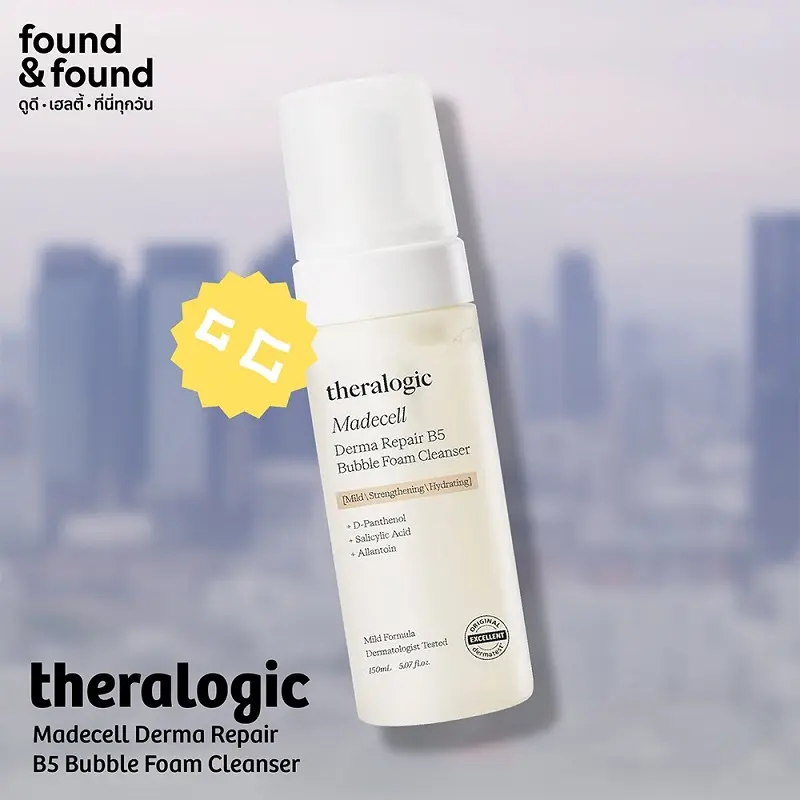 Step 1 คลีนผิวสะอาดใส ด้วย “theralogic Madecell Derma Repair B5 Bubble Foam Cleanser”