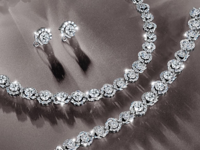 ปิดท้ายที่สาวสังคมนิยมออกงานกลางคืนกับชุดเดรสยาว ขอแนะนำ เซ็ตสร้อยคอพร้อมสร้อยข้อมือเพชร ดีไซน์เรียบหรูสุดคลาสสิก เต็มไปด้วยความลักชัวรี่ ด้วยเพชรทรงกลม D Color Triple Excellent พร้อมด้วยใบเซอร์ระดับโลก GIA ที่สุดแห่งเพชรคุณภาพงดงามเปล่งประกาย เหมาะกับนิยามน้อยแต่มากเรียบแต่โก้