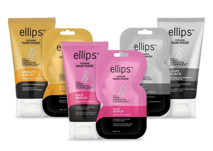 2 เอลิปส์ แฮร์ มาส์ก โปร เคราติน คอมเพล็กซ์ (ellips Hair Mark Pro-Keratin Complex) – ตัวช่วยให้ผมสวย มั่นใจได้ทุกเวลา ด้วยมาส์กบำรุงเส้นผมที่ขายดีที่สุด 4 ปีซ้อนในประเทศอินโดนีเซีย ด้วยส่วนผสมจากโปร เคราติน คอมเพล็กซ์ เพียงชโลมทิ้งไว้ 3-5 นาทีหลังสระผมแล้วล้างออก สามารถช่วยฟื้นฟูเส้นผมที่แห้งเสียให้กลับมามีชีวิตชีวาเหมือนเดิม ประกอบด้วย 3 สูตร ได้แก่ สูตรแฮร์รีแพร์ สูตรสมูทแอนด์ซิลกี้ และสูตรซิลกี้แบล็ค ในขนาด ซอง 18 กรัม และ หลอด 120 กรัม ราคา 39 บาท และ 189 บาท ตามลำดับ