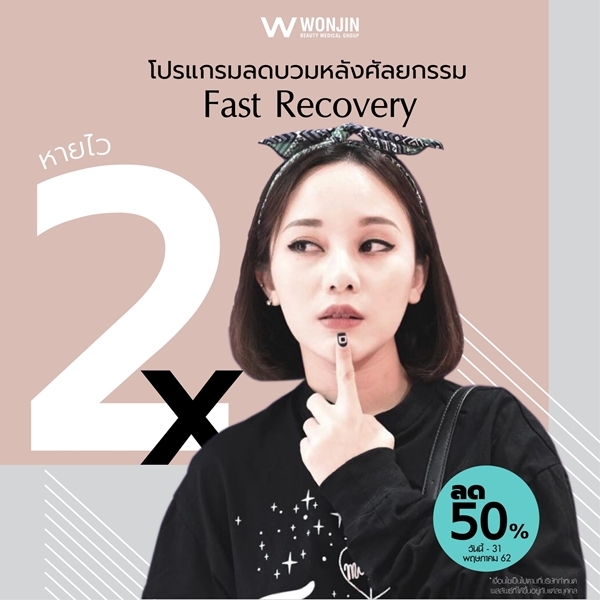 วอนจิน ไทยแลนด์ (WONJIN Thailand) แนะนำ โปรแกรม WONJIN Fast Recovery ตอบโจทย์หลังการทำศัลยกรรม ช่วยให้คุณฟื้นตัวหลังทำศัลยกรรมเร็ว x 2 ลดปัญหาบวม รอยม่วงช้ำ และรอยเย็บแผลไม่สวย เทคนิคเฉพาะจาก รพ วอนจิน เกาหลี ไม่ว่าจะทำศัลยกรรมที่ไหน ก็สามารถเข้ารับบริการโปรแกรม WONJIN Fast Recovery จากวอนจิน ได้ ราคาพิเศษเพียง 9,000 บาท จาก ปกติ 18,000 บาท วันนี้ – 31 พ.ค. 62 เท่านั้น