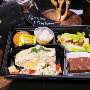 - ข้าวกล่องปลาแซลมอนย่างซีอิ๊ว SALMON TERIYAKI BOX (320 บาท) เอาใจคนรักแซลมอนด้วยข้าวกล่องแซลมอนย่างซอสเทอริยากิหอมหวาน แซลมอนเนื้อแน่นคุณภาพจากนอร์เวย์ หวานอร่อยชุ่มฉ่ำซีอิ๊วในสไตล์ญี่ปุ่น