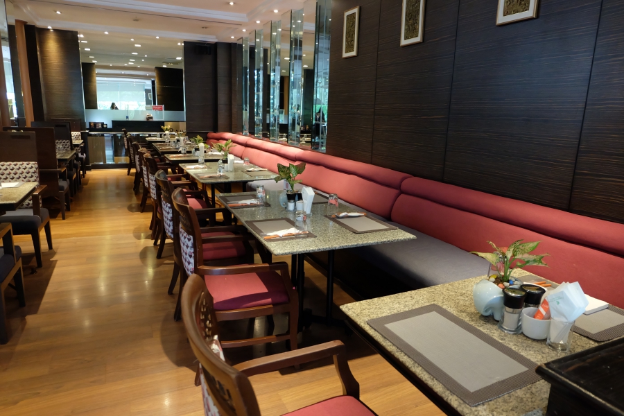 “ข้าวต้มบุฟเฟ่ต์” ตั้งอยู่ชั้น G ของโรงแรม มีพื้นที่นั่งกว้างขวาง มี 2 โซนด้วยกัน คือ บริเวณด้านนอกริมกระจกใสบานใหญ่ เปิดกว้างให้เห็นวิวทิวทัศน์สบายตา และอีกโซนเป็นพื้นที่นั่งใกล้กับไลน์อาหาร ซึ่งทั้ง 2 โซนสามารถรองรับได้กว่า 150 ที่นั่ง