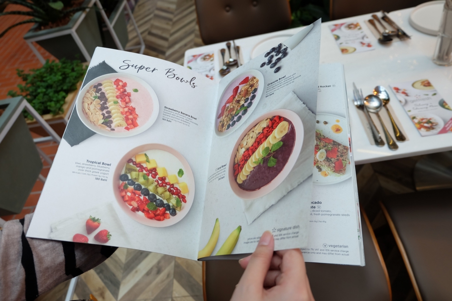 Tokyo bowl (โตเกียวโบลว์) Penne Pesto (เพนเน่ เพสโต) Pesto Chicken Panini (ไก่เพสโต พานินี่) Cajun Chicken Steak (สเต็กไก่คาจัน) Mango Tango Smoothie (แมงโก้แทงโก้ สมูทตี้)