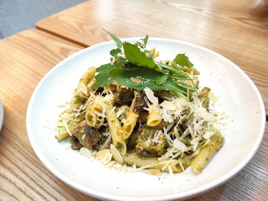 เพนเน่อกไก่ปรุงเครื่องเทศคาจัน เห็ดออร์แกนิก ในซอสเพสโต้ 260.00 ฿