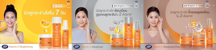 เ น บู๊ทส์ ประเทศไทย ยกขบวนชุดผลิตภัณฑ์บำรุงผิวที่อุดมด้วยวิตามินซี ประกอบด้วยผลิตภัณฑ์หลากหลายรูปแบบเพื่อการบำรุงผิวอย่างครบครันและมีคุณสมบัติเหมาะสำหรับทุกสภาพผิว เอาใจผู้หญิงในทุกปัญหาผิวโดยเฉพาะ ได้แก่ บู๊ทส์ วิตามินซี ไบร์ทเทนนิ่ง, บู๊ทส์ วิตามินซี แอดวานซ์ และ บู๊ทส์ วิตามินซี แอดวานซ์ พลัส พร้อมเพิ่มความมั่นใจให้ผิวสุขภาพดี กระจ่างใส ในราคาจับต้องได้ ที่ร้านบู๊ทส์ทุกสาขาทั่วประเทศ