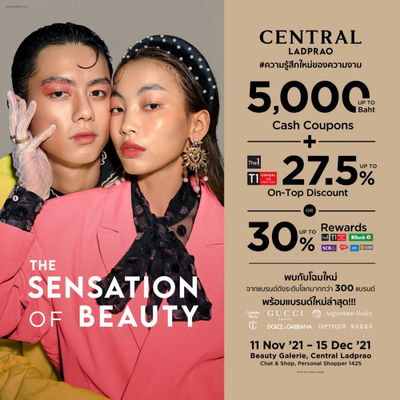 ห้างเซ็นทรัล เตรียมจัดงาน “Central The Sensation of Beauty (เซ็นทรัล เดอะ เซ็นเซชั่น ออฟ บิวตี้)” พบกับโฉมใหม่แผนก “Beauty Galerie” (บิวตี้ แกเลอรี) ห้างเซ็นทรัลลาดพร้าว บิวตี้แลนด์มาร์คแห่งใหม่ พร้อมเผยโฉมเคาน์เตอร์แบรนด์ดังระดับโลก ทั้งเครื่องสำอาง และน้ำหอมกว่า 300 แบรนด์ อาทิ Dior ,Chanel,YSL,Nars,Shiseido,Bobbi Brown,La Mer,Estée Lauder,M.A.C,Lancôme,Kiehl’s,Clarins,The History of Whoo,Sulwhasoo,Laura mercier,Biotherm,Jo Malone London,Clinique,Giogio Armani Beauty,Origins,Hourglass,Tom ford Beauty และอีกมากมาย ตอกย้ำความเป็น Beauty Destination ของเมืองไทย พร้อมพบกับโปรโมชั่นสุดพิเศษรับคูปองส่วนลดแทนเงินสด สูงสุด 5,000 เมื่อช้อปตามเงื่อนไข, ลดเพิ่ม สูงสุด 27.5% เมื่อใช้คะแนนเดอะวัน 2 เท่าของยอดช้อป หรือใช้คะแนนลดเพิ่มและรับเครดิตเงินคืนสูงสุด30% จากเดอะวันและบัตรเครดิต ตั้งแต่วันที่ 11 พ.ย 64 – 15 ธ.ค 64 ณ แผนก “Beauty Galerie” (บิวตี้ แกเลอรี) ห้างเซ็นทรัลลาดพร้าว