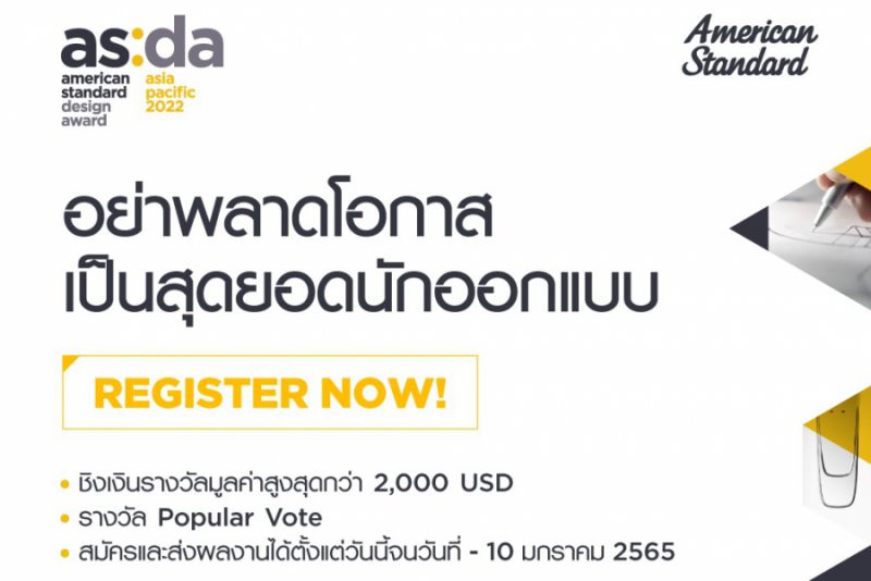 ท่านสามารถอ่านข้อมูลเพิ่มเติม ลงทะเบียนเข้าร่วมการแข่งขันและส่งผลงานการออกแบบห้องน้ำได้ที่เว็บไซต์ ASDA (https://www.americanstandard-apac.com/asda-th) ร่วมเป็นส่วนหนึ่งในการก้าวเดินเพื่อความเปลี่ยนแปลง และสร้างความแตกต่างให้กับชีวิตของผู้บริโภคในวงกว้างไปด้วยกันกับเรา