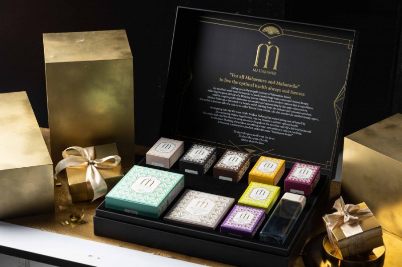 สำหรับอาหารเสริมแบรนด์ “มหาราณี” (Maharanee) นั้นถูกสร้างสรรค์ขึ้นภายใต้แนวคิด “MAHARANEE กุญแจสู่ความงามดุจราณีในแบบคุณ” โดยมีทั้งหมด 9 สูตรด้วยกัน ที่สามารถช่วยฟื้นฟูสุขภาพตั้งแต่ศีรษะจรดปลายเท้า ทั้งภายใน และภายนอก โดยมี 2 สูตรที่ได้รับความนิยมเป็นอย่างมาก