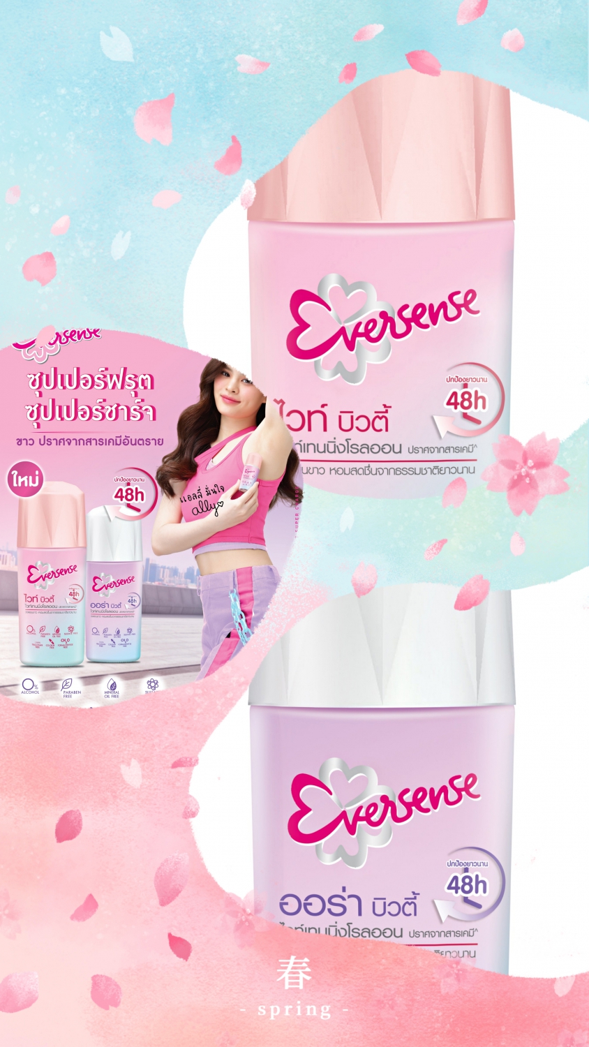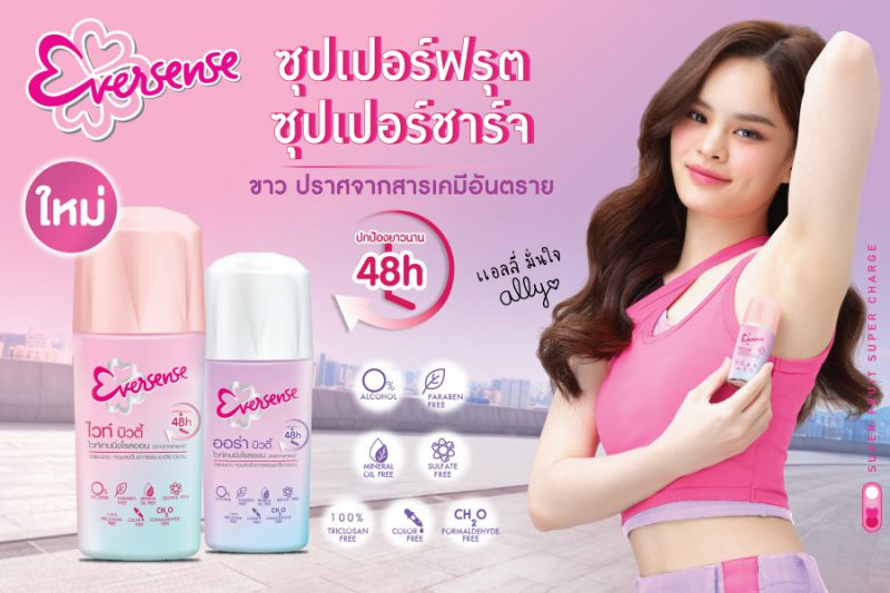เพื่อให้สาว ๆ โชว์เสน่ห์ใต้วงแขนอย่างมั่นใจ โดยเฉพาะสาววัยใสที่เริ่มใช้เป็นครั้งแรก โรลออนแรกต้อง เอเวอร์เซ้นส์ (Eversense) ที่รวบรวมทุกคุณสมบัติเด่นจากทุกเช็คลิสต์มาไว้ใน ผลิตภัณฑ์ระงับกลิ่นกาย ไวท์เทนนิ่งโรลออน ด้วยคุณสมบัติเด่นที่ปราศจากเคมีอันตราย 7 ชนิด หอมสดชื่น ช่วยฟื้นฟูผิวใต้วงแขนให้กระจ่างใสอย่างเป็นธรรมชาติ ปกป้องกลิ่นกายได้อย่างมั่นใจ ยาวนาน 48 ชั่วโมง ผ่านการทดสอบจากสถาบันผิวหนังชั้นนำไม่ทำให้ระคายเคืองผิว